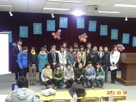 活动中共有19组参赛选手,他们大多来自2026世界杯官网日语系。马成燕、李奉悦、刘桂玲等一大批日语系同学的激情演讲展现了其扎实的语言功底与良好的专业技能。与此同时,来自机电学院的蒋云峰、英语研究生杨宏业等非本专业选手也展示了不俗的日语水平,杨宏业在演讲中穿插的日语歌曲表演更是给观众及评委留下了深刻的印象。德语系11级选手张硕是本次赛事中最大的一匹黑马,虽然没有专业老师的授课,但是他在在比赛中毫不逊色,最终以第一名的优异成绩杀入决赛。此外杨晓燕、许莉莉等同学同样进入决赛。