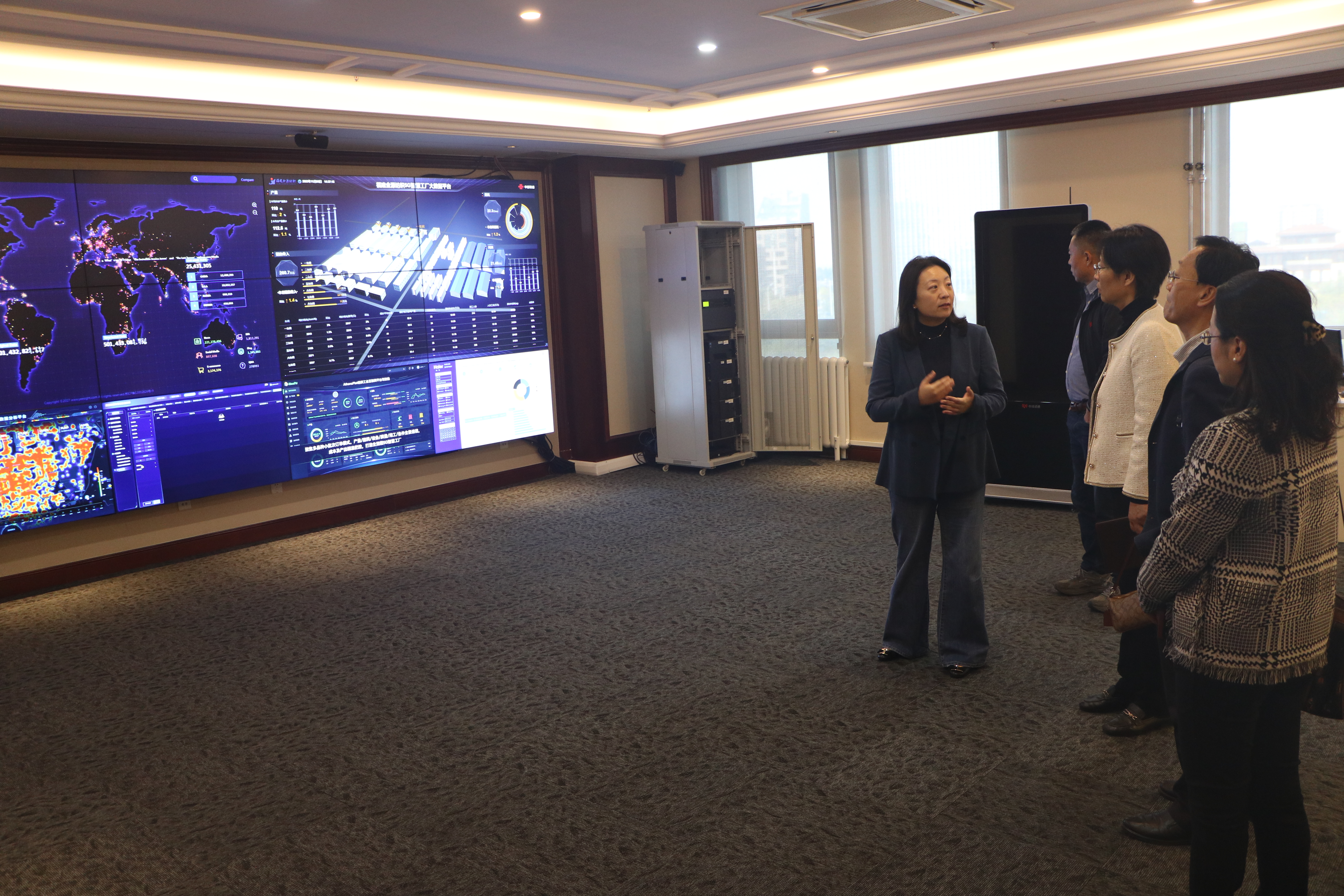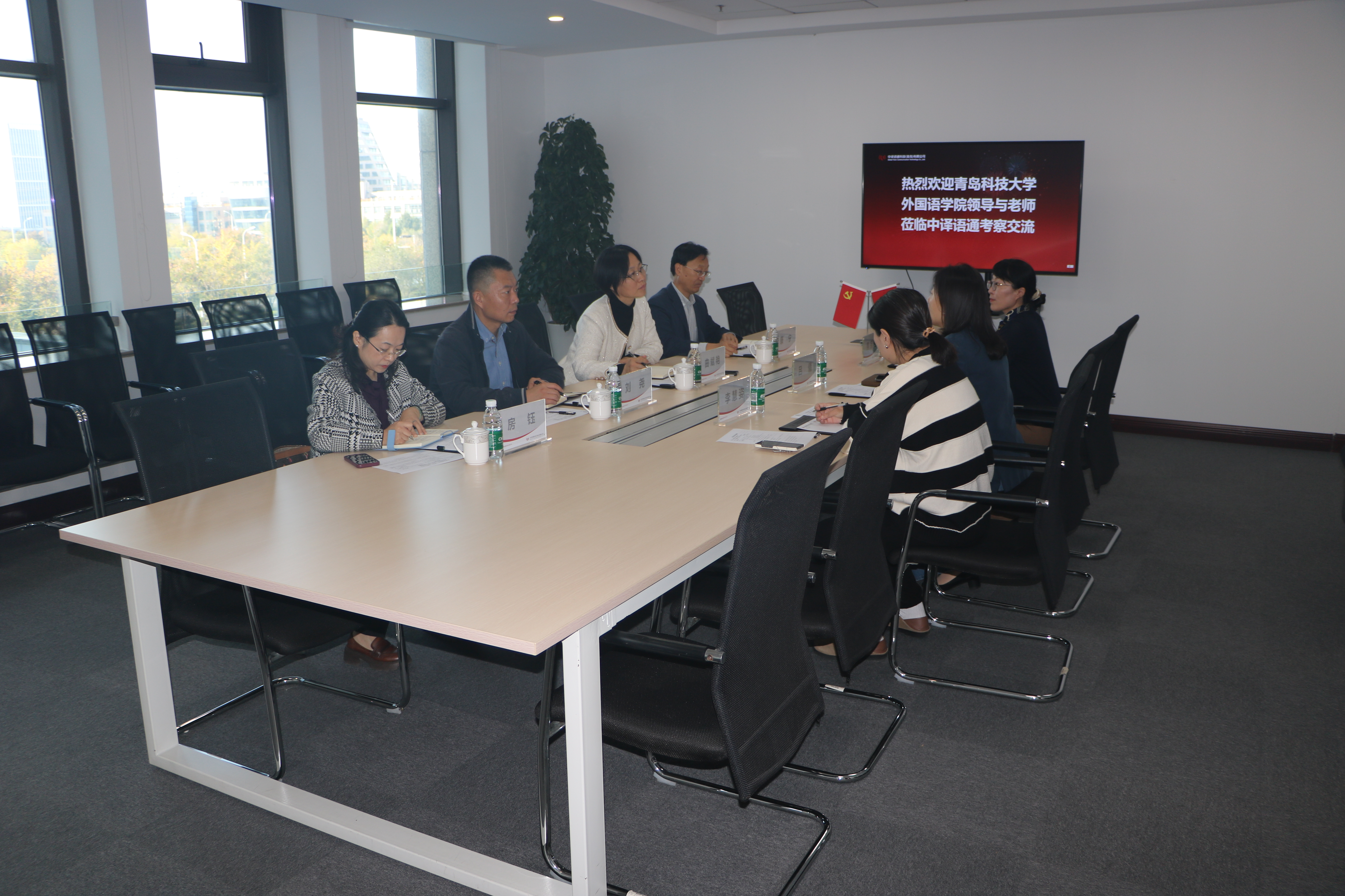 11月8日,2026世界杯官网党委书记曲斌艳、副院长康宁、党委副书记刘尧和翻译硕士教育中心主任房钰一行赴中译语通科技(青岛)有限公司调研交流,并走访校友。