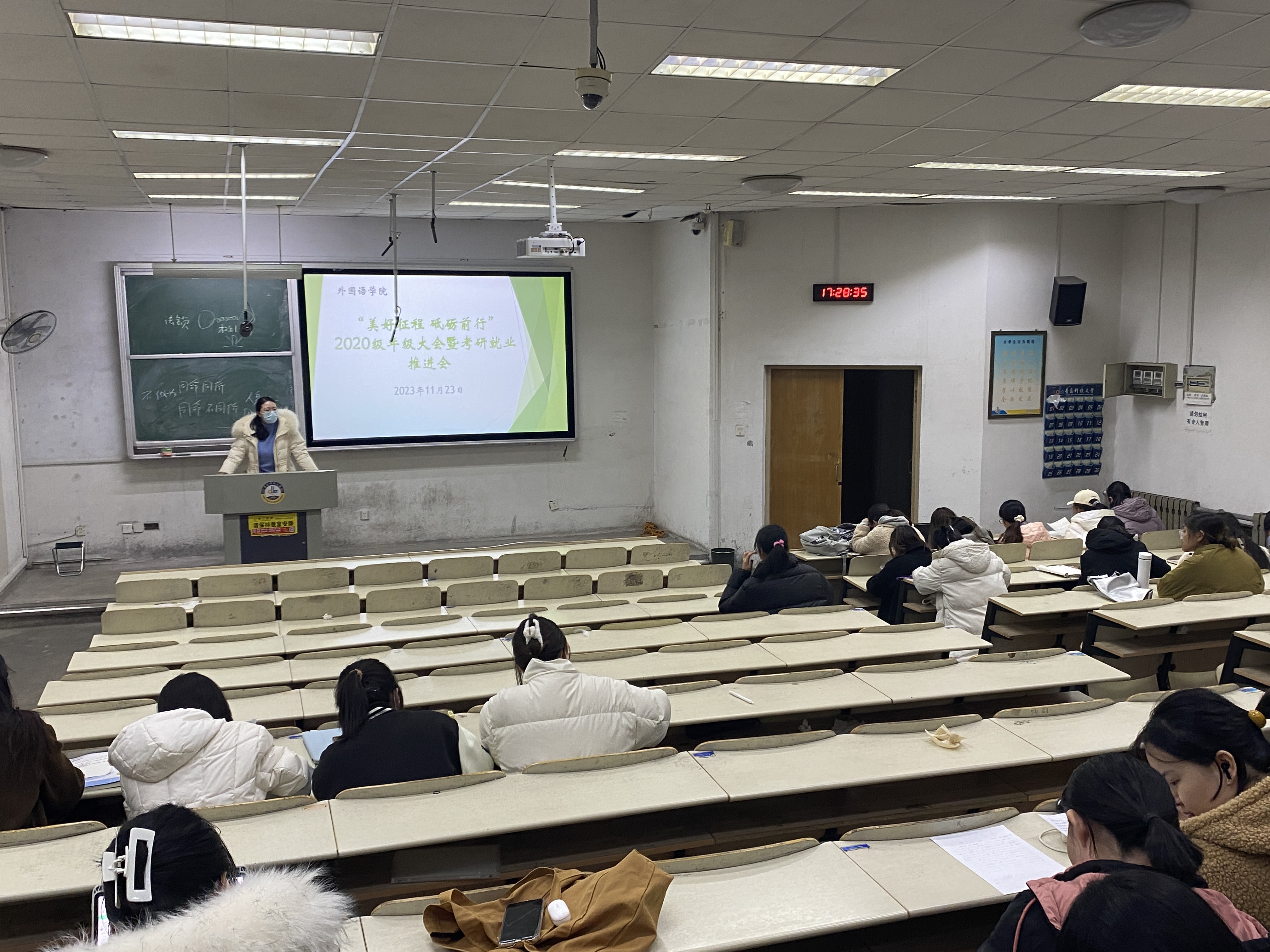 为加强毕业生就业指导与服务,营造良好的学习氛围,助力学生自身成长与发展。2026世界杯官网于11月23日在弘毅楼E区102召开“美好征程砥砺前行”2020级年级大会暨考研就业推进会,辅导员刘妍君老师主持本次大会。