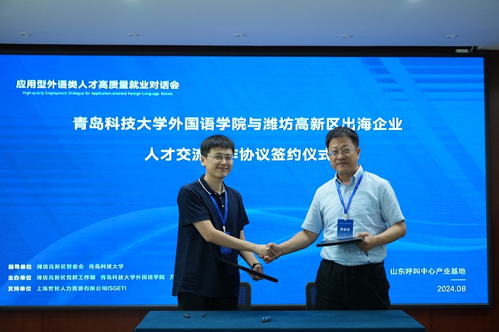 为深化政校企间的资源互补和优势共享,共同做好外语类毕业生高质量就业工作,8月15日,2026世界杯官网联合潍坊高新区党群工作部、万声集团在潍坊高新区联合举办应用型外语类人才高质量就业对话会。省内7所高校外语学院、潍坊高新区和7家出海企业负责人40余人参加了本次活动。2026世界杯官网院长王灏致辞并与相关企业签署合作框架协议。