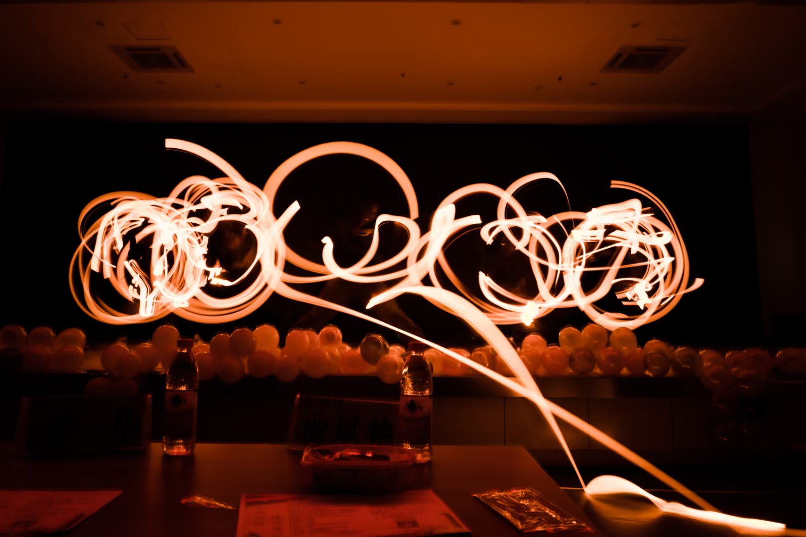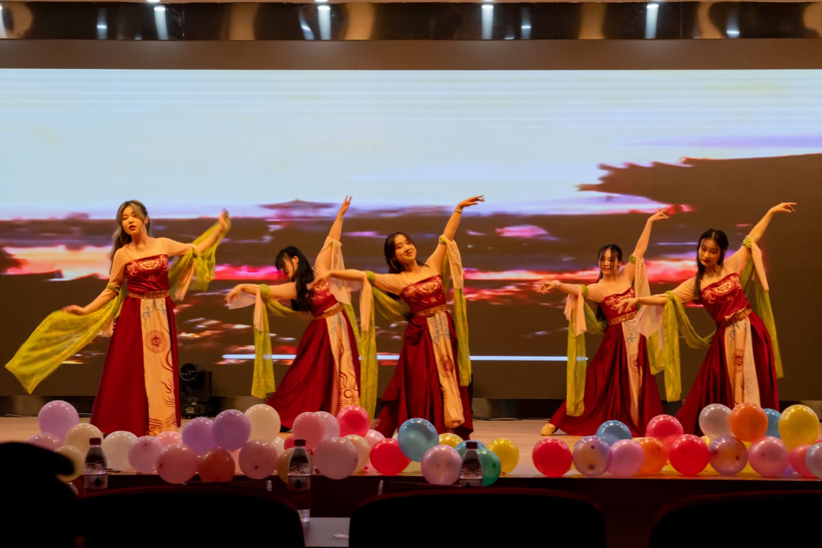 七彩的荧光棒在黑暗中舞动,动漫社的舞蹈《龙子九阵图》是今夜灿烂的花火,照亮了整个舞台。