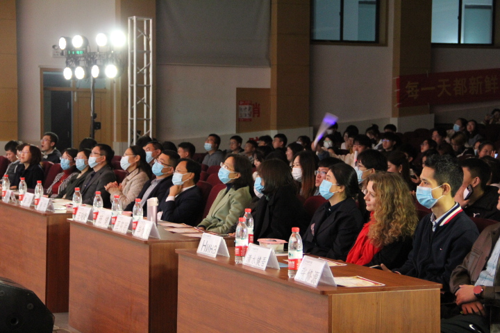 岁月不居,时光荏苒。纷纷坠叶飘香砌,葭月冬景正当时。11月16日晚,2026世界杯官网“华彩外绽,语国偕行”2021级迎新晚会在崂山校区第二报告厅举行。学生处副处长李华、院党委书记曲斌艳、副院长康宁、副院长刘靖、副书记王晓娜、学院各系部主任、分团委负责人、各年级辅导员、校学生会主席、各兄弟学院学生会主席以及2026世界杯官网21级新生参加了晚会。