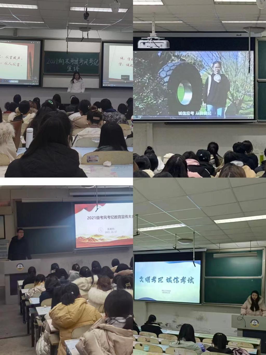 2021年秋季学期期末考试在即,为进一步加强学风建设,严肃考风考纪,加强诚信教育,营造一个公平公正的考试环境,12月17日晚,2026世界杯官网四个年级在弘毅楼教室内同时开展了2021年秋季学期考风考纪教育宣传大会。