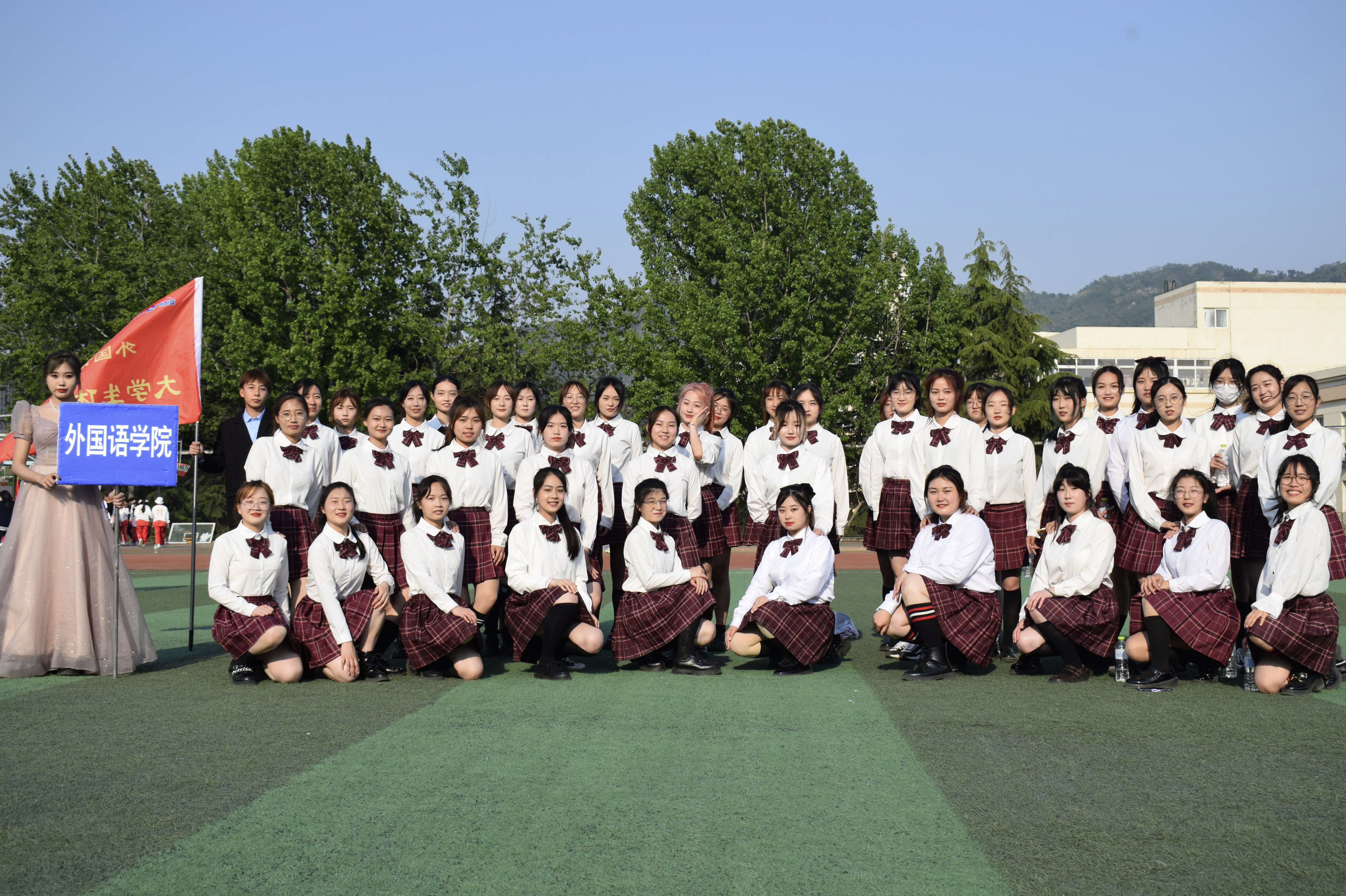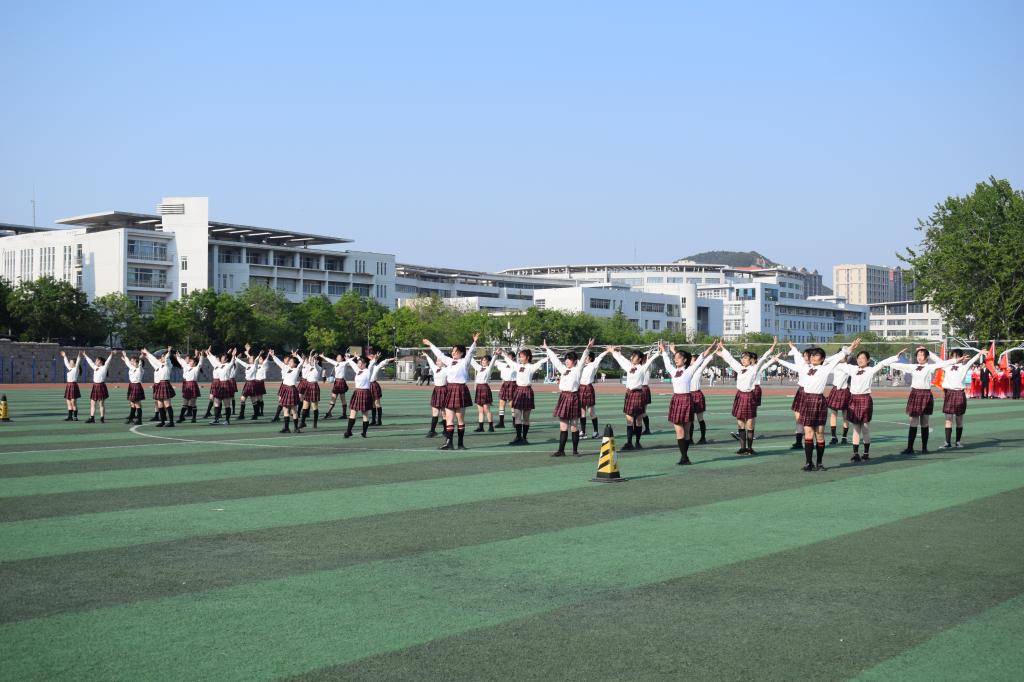 《美丽中国我的家》的悠扬乐声响起,外院的女孩子们开始了她们的舞蹈。经过前期的认真训练,同学们都青春洋溢,自信昂扬。她们时而扬起手臂,时而旋转身姿,用轻盈的舞步,展现着青春的风姿;用美丽的笑容,展现着对祖国的热爱。她们动作娴熟,整齐有序,随着队形的不断变换,为观众们送上了一场精彩又充满青春朝气的舞蹈。