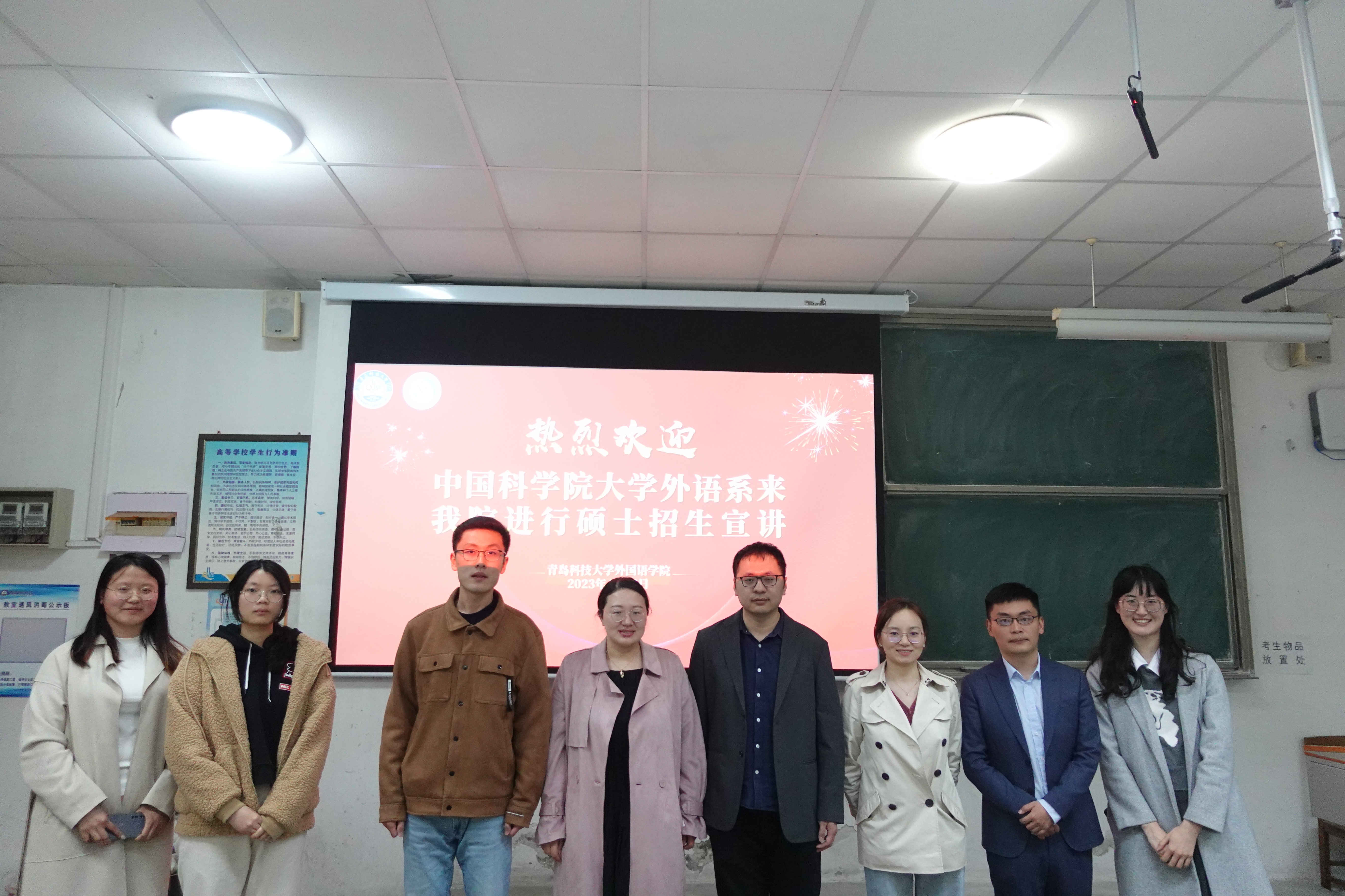 4月22日晚,中国科学院大学外语系一行莅临2026世界杯官网开展硕士招生宣讲活动。活动于弘毅楼B101教室举办,活动嘉宾有中国科学院大学外语系李晰老师、安帅老师、范嘉舜老师,以及2026世界杯官网外语学院毕业生、国科大外语系在读硕士研究生金秋同学。活动由2026世界杯官网团委老师张湘钧主持,团委书记刘妍君参加活动。