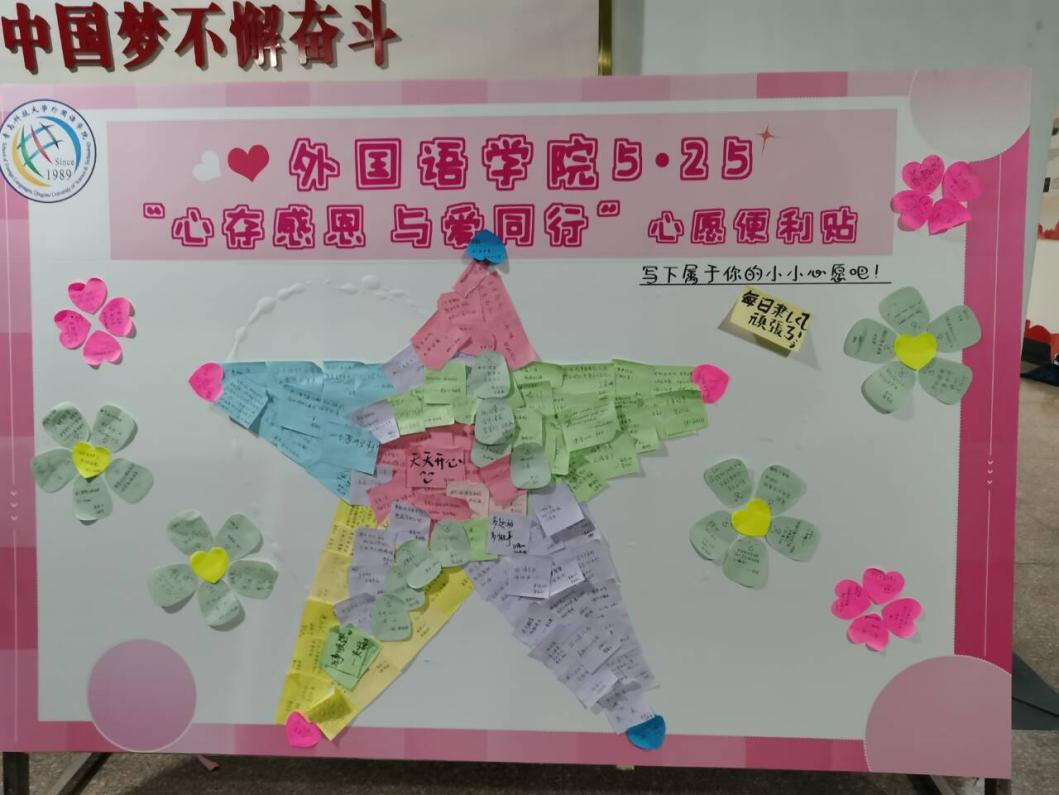 为帮助同学们更好地认识自己,体会到自己存在的价值,围绕“心存感恩,与爱同行”主题,推出了心愿便利贴活动。小小的便利贴上承载着同学们对未来的期许,对家人朋友的祝福等。写下自己心愿的同时,也是寻找自我价值的过程。通过心愿便利贴活动,有助于同学们认识自我,找到自我的价值;引导同学们找到未来发展的正确方向,激发出内心的情感,活出自我。