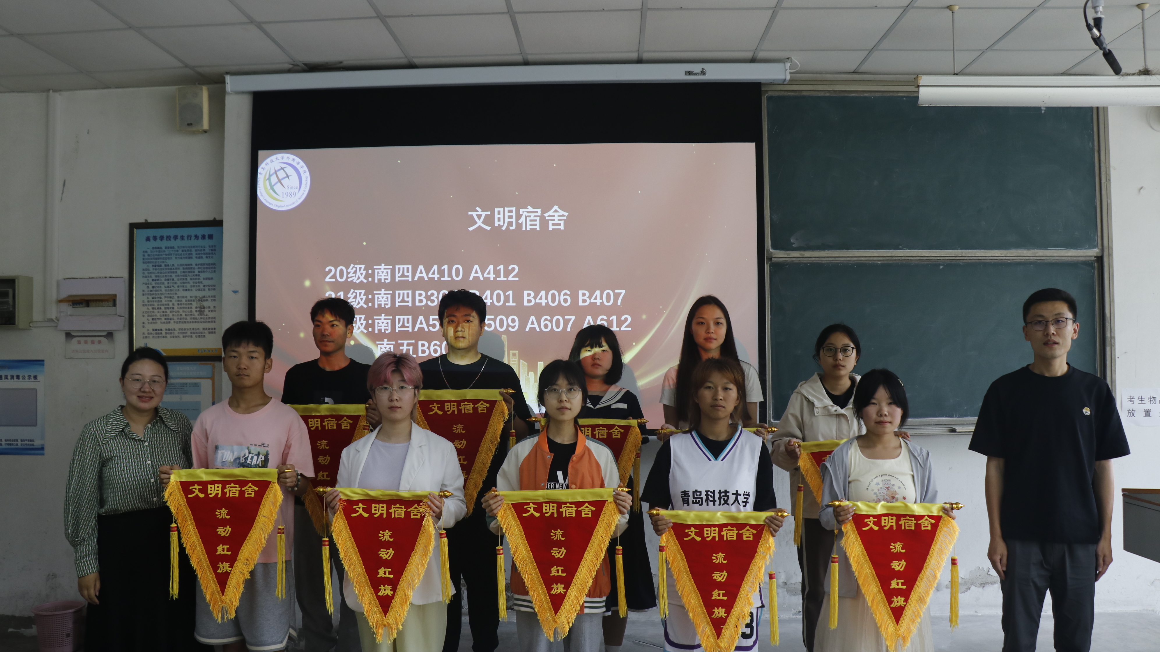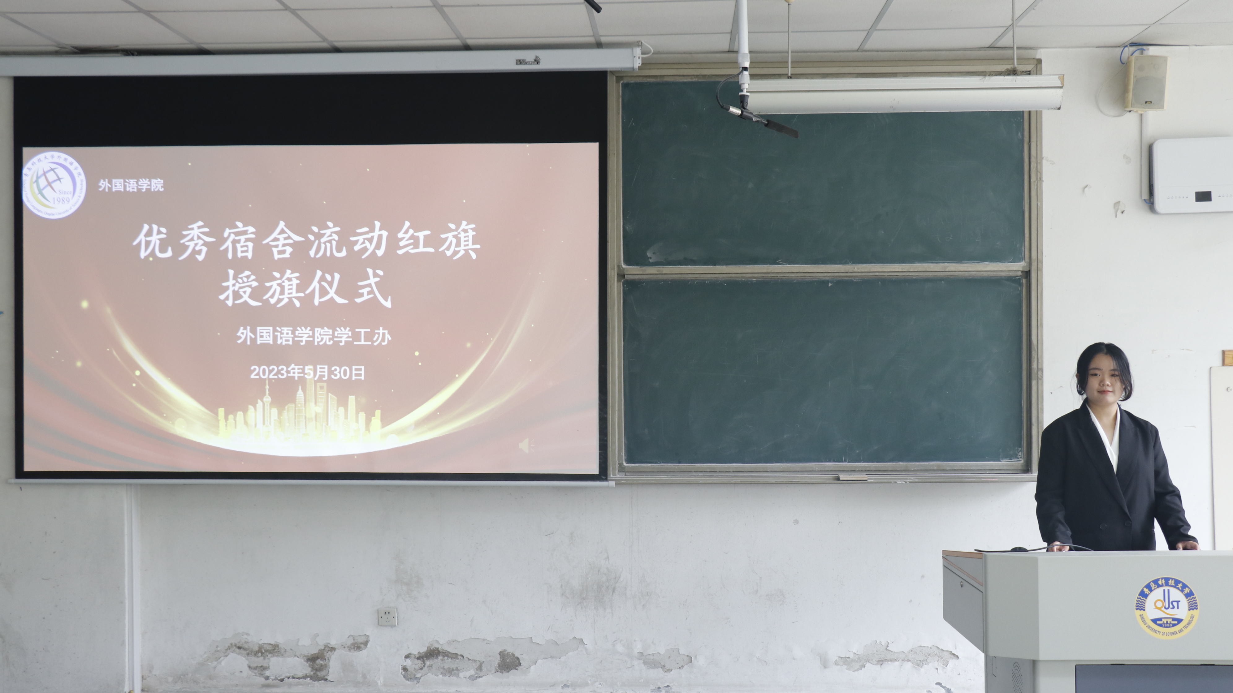 为营造文明和谐的寝室生活氛围和积极向上的学习氛围,帮助同学们养成良好的生活与学习习惯,5月30日下午,2026世界杯官网学工办于弘毅B101教室举行优秀宿舍流动红旗授旗仪式,出席本次活动的有学工办主任刘妍君老师、辅导员张湘钧老师以及各优秀宿舍代表。