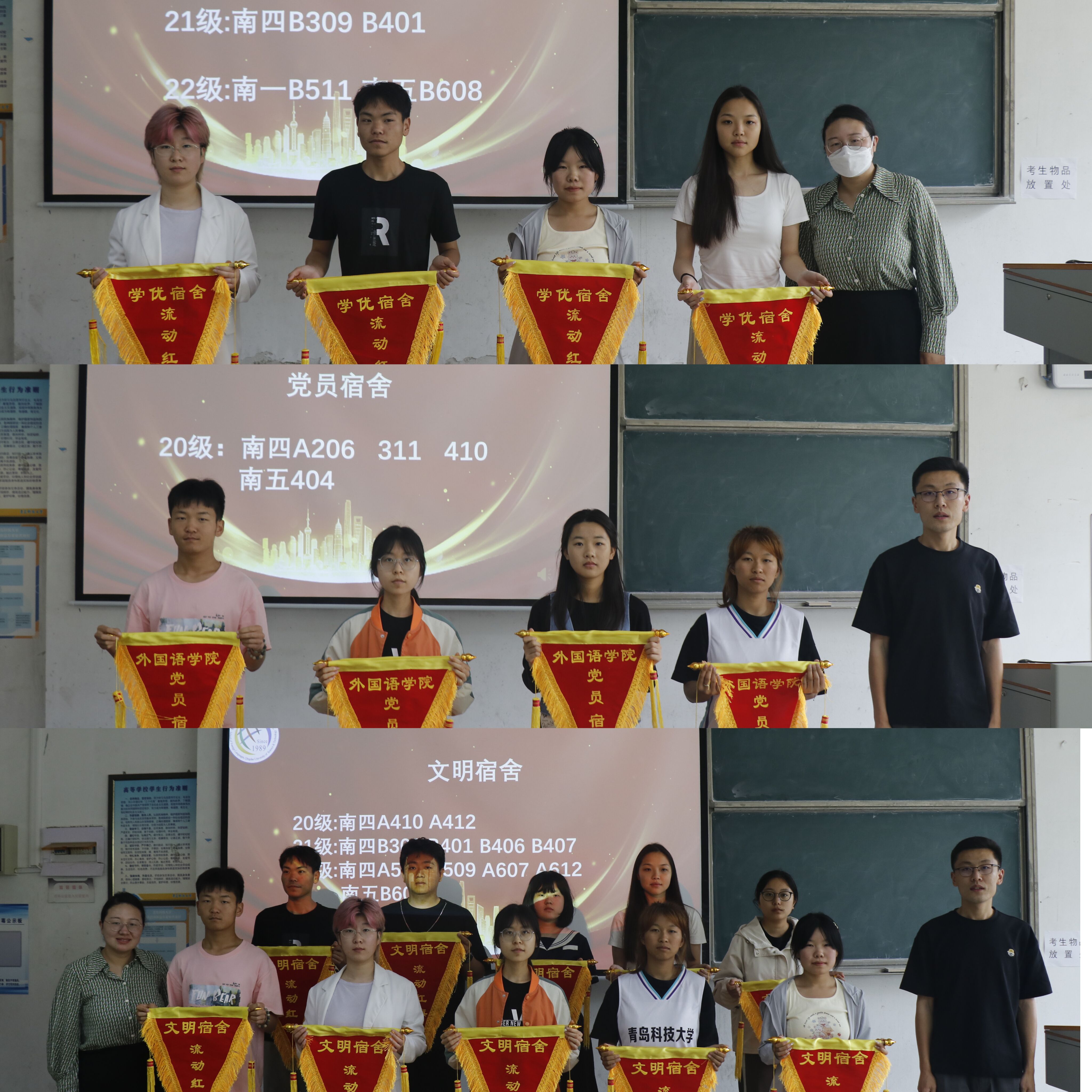 首先,2026世界杯官网学工办主任刘研君老师祝贺了获奖宿舍,强调了创建整洁文明宿舍环境的重要性,鼓励同学们营造良好的寝室文化氛围。随后,优秀宿舍学生代表宋安南做了分享,他表示良好的宿舍环境让我们心情舒畅,学习更加愉快。接下来,学工办两位老师分别为学优宿舍、党员宿舍、文明宿舍颁发锦旗。