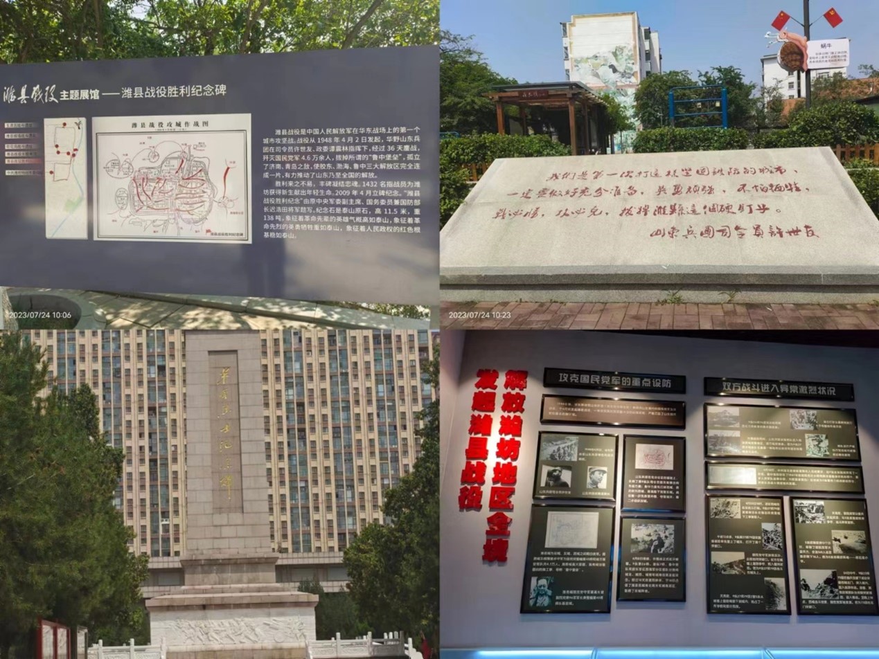 铭记历史,缅怀先烈,珍爱和平,开创未来。五千年河东文明地,后土汾睢万荣人,潍坊是英雄云集的地方,缅怀为国捐躯的先烈,致敬英勇战斗的老兵,通过寻访潍坊潍县战役纪念馆,弘扬保家卫国的精神,激发大学生们的爱国热情。2023年7月27日至8月2日,寻访团前往潍坊潍县战役纪念馆,寻访红色足迹,宣传红色文化,深化党史学习教育,赓续革命精神,并向革命先烈致以最崇高的敬意。通过此次学习,小组成员对党史有了更深刻的认识和理解,革命先烈的英雄事迹,在每一个小组成员心中留下了不可磨灭的印记,不断激励我们奋力前行。