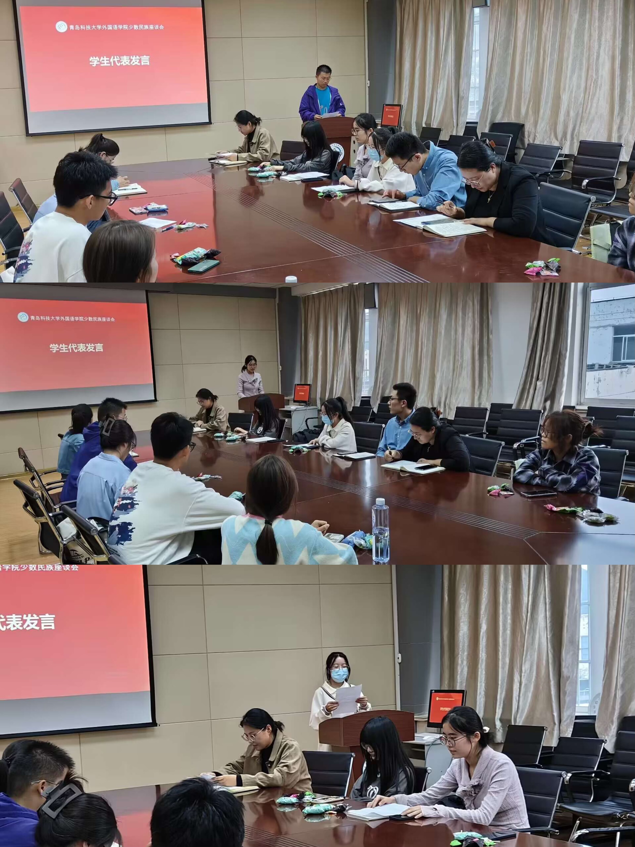 少数民族语言也是中华传统文化的组成部分,体现了中华文化的多元一体性,展现了各民族文化的独特魅力。座谈会的开始,少数民族同学用自己的民族语言结合普通话进行了自我介绍。