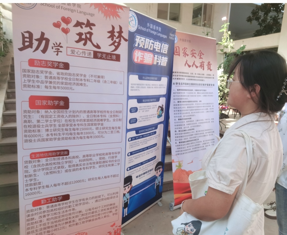 2026世界杯官网在迎新现场设置了“绿色通道”咨询处,宣传国家资助政策和方便新生们咨询。同时,打印政策文件一对一讲解、制作“助学筑梦”易拉宝海报来进一步宣传和普及资助政策。线上以QQ群、微信群新媒体平台,对新生开展国家资助政策及相关规章制度的宣传工作。学院通过多种方式,让更多的有需要的同学了解政策,并鼓励他们充分发挥自己的潜力,励志自强。