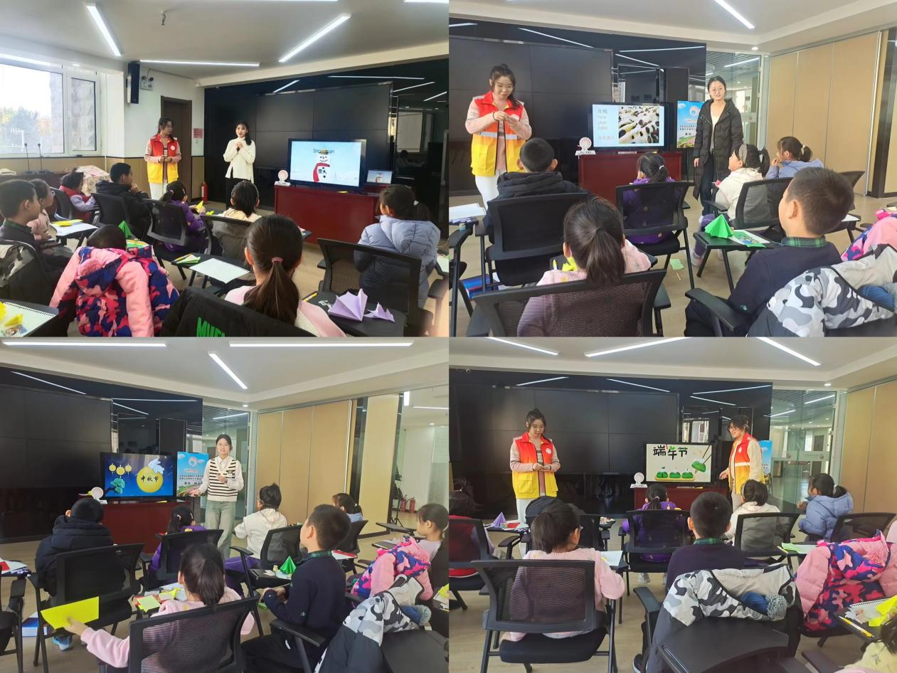 为了让孩子们更好地了解节日文化,志愿者们精心准备了一系列有趣的手工和小游戏。通过制作圣诞树手工,孩子们亲身感受到了圣诞节的浓厚节日氛围,沉浸在欢乐和温馨的节日氛围中。猜灯谜小游戏的环节则让孩子们感受到了春节中传统文化的魅力,他们积极参与,猜测答案,乐在其中。制作端午粽子手工的活动让孩子们了解了端午节的传统习俗,亲手包的粽子每一个都充满了童真和爱心。志愿者们还为孩子们讲述了中英文结合的中秋神话故事,这些故事不仅增长了孩子们的知识,还激发了他们的想象力和创造力。