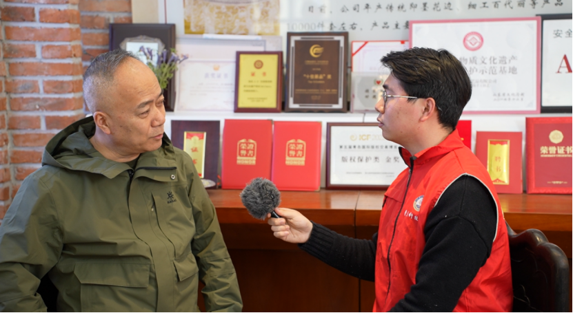 随后,团队对中国酿酒大师、全国五一劳动奖章获得者、即墨黄酒传统酿造工艺代表性传承人于秦峰进行了深入访谈。于秦峰不仅向团队展示了黄酒的传统酿造工艺,还分享了自己对于传承和发展即墨黄酒文化的热情和愿景。他鼓励年轻一代积极参与非遗文化的保护和推广,让更多人了解并欣赏中国传统的酒文化。