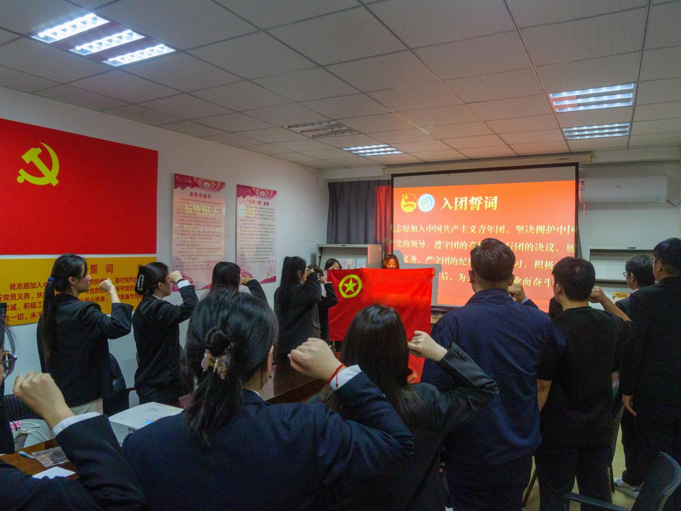 仪式在激昂的团歌《光荣啊,中国共青团》中圆满落幕。全体团员齐声高歌,以青春之声唱响奋进新征程的信念与决心。