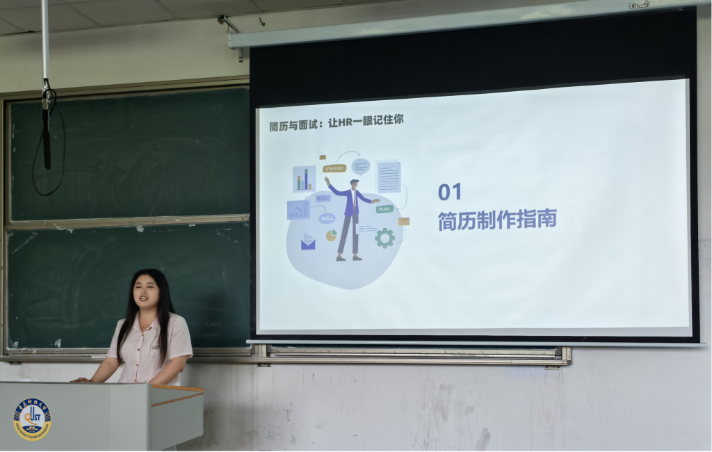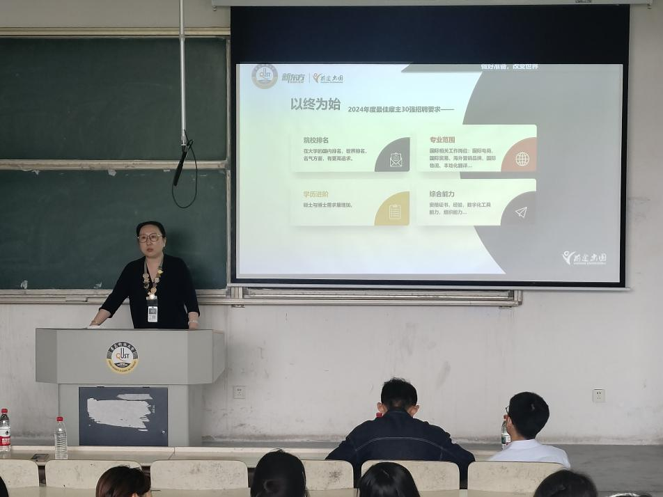 英科再生人力经理李玉详细介绍了企业的发展历程、组织架构、业务范围等基本情况,着重讲解了校招生培养和发展体系,让同学们对企业的用人理念和人才培养模式有了清晰的认识。同时,结合自身工作经验,针对学生关注的职业发展、岗位要求等问题进行了耐心解答,让学生们看到了企业的广阔发展前景。