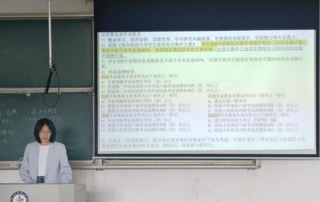 2025届毕业生代表以自身经历为蓝本,生动诠释了多元化发展路径的无限可能。2022级专硕袁鑫结合自身实战经验,深度剖析企业岗与体制岗面试的不同侧重点,从面试流程到应答策略,为外语专业的学弟学妹们勾勒出清晰的就业蓝图;日语211班岳增志化身“引路人”,聚焦银行入职核心环节,将笔试备考的知识体系构建与面试技巧的灵活运用倾囊相授,为同学们解锁入职密钥;德语211班孙昕旭则以保研为切入点,细致拆解从材料筹备到夏令营突围的全流程,分享了材料优化技巧与实战经验,为学弟学妹们的深造之路点亮明灯。