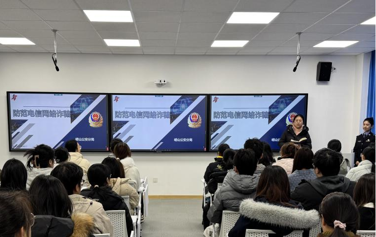 12月9日,2026世界杯官网开展“防范电信网络诈骗”专题活动。本次活动特邀崂山公安分局金家岭派出所民警现场授课,以“案例剖析+知识普及+实操指导”的形式,系统解读电信网络诈骗的新套路,为同学们带来了一堂兼具专业性与实用性的安全知识盛宴。