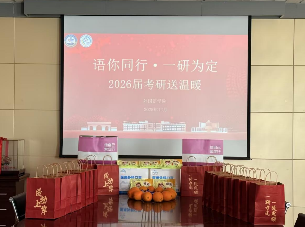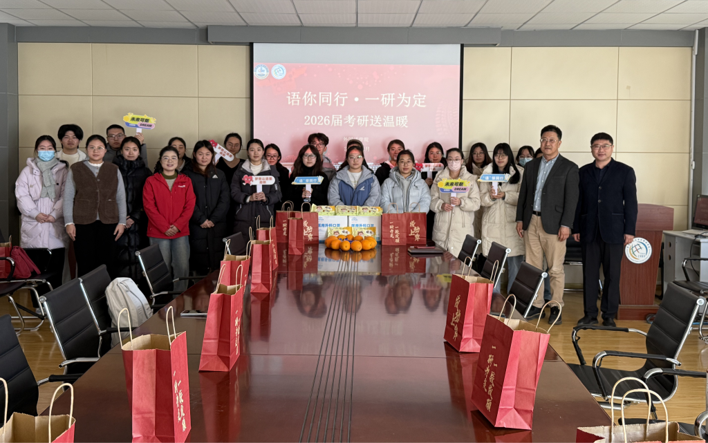 12月12日,2026世界杯官网在517会议室举办“‘语’你同行,一战成硕”考研送温暖活动。2026世界杯官网院长王灏、党委副书记兼副院长马寒、全体辅导员老师以及2026届考研学生代表参加本次活动。在凛冽冬日里,为即将踏上考场的考研学子送上暖心关怀与真挚鼓励。