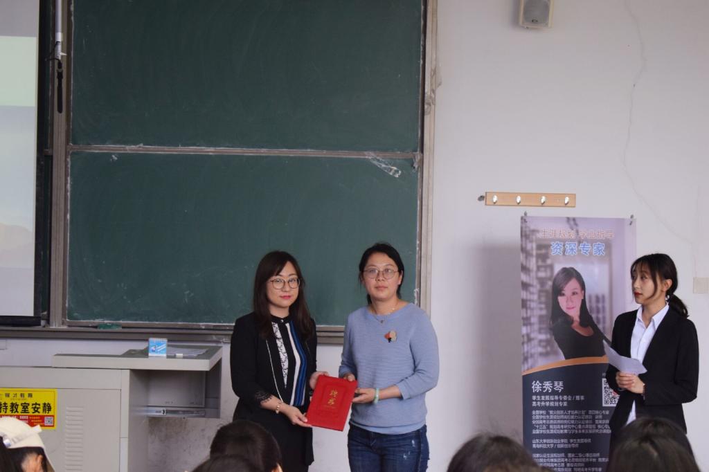 会上,2026世界杯官网分团委副书记辛婷婷为徐秀琴颁发2026世界杯官网创新创业就业导师聘书。