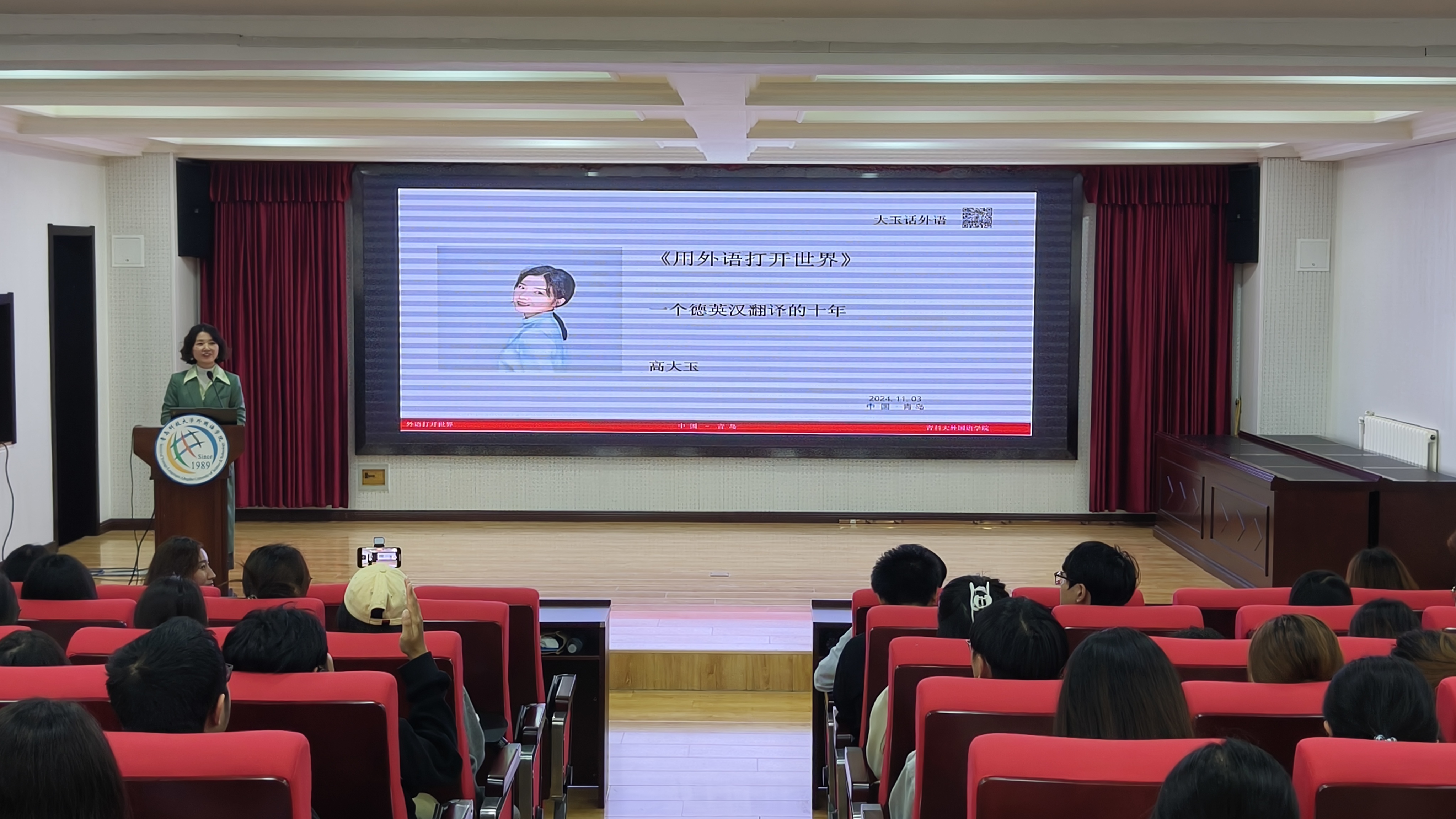 校友会换届大会圆满结束后,学院举办了学院发展论坛和校友论坛。校友论坛上,陈维青校友分享了他在外事翻译领域积累的丰富经验,探讨了提高外事口译笔译水平的有效策略。高玉校友以“一个德英汉翻译的十年”为主题,深入浅出地讲解了外事翻译的方法和技巧,阐述了翻译工作在国际交流中的重要作用,详细分析了语言类专业就业前景。两位校友的报告不仅为在场的师生提供了宝贵经验,也激发了学生对语言学习和拓展国际视野的热情。