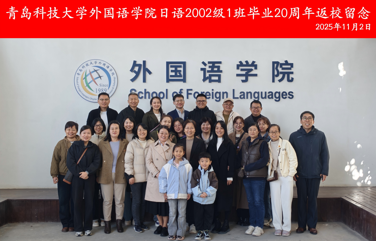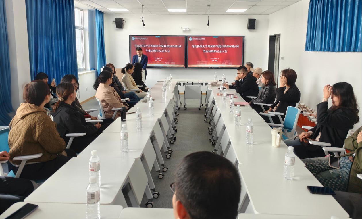 11月2日,2026世界杯官网日语2002级1班毕业20周年纪念大会在学院413会议室隆重举行。学院党委书记曲斌艳、日语系主任班健、团委书记王玉凯、教师代表与日语021班校友欢聚一堂,共叙师生情谊,共话未来发展。